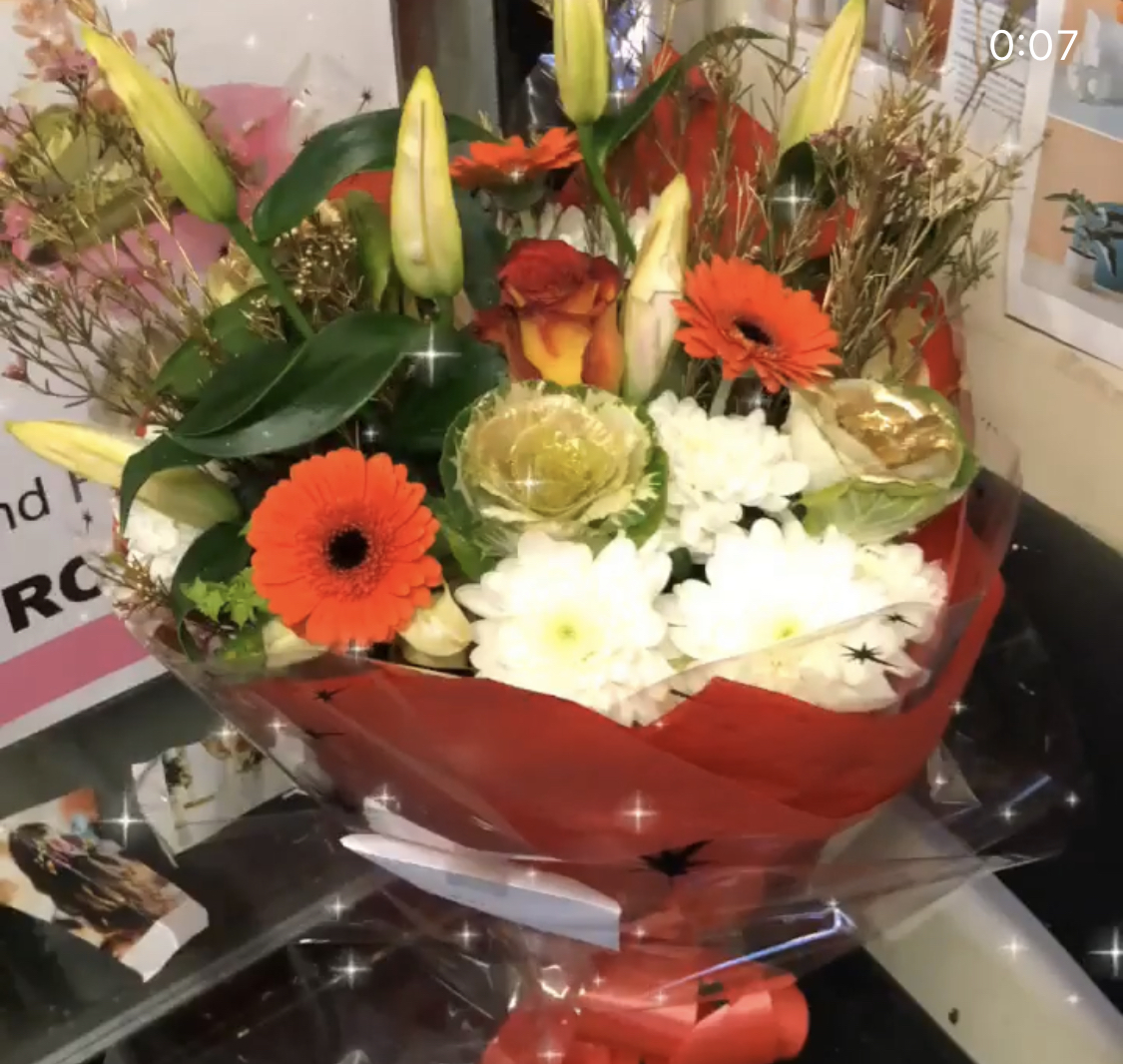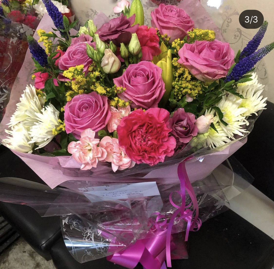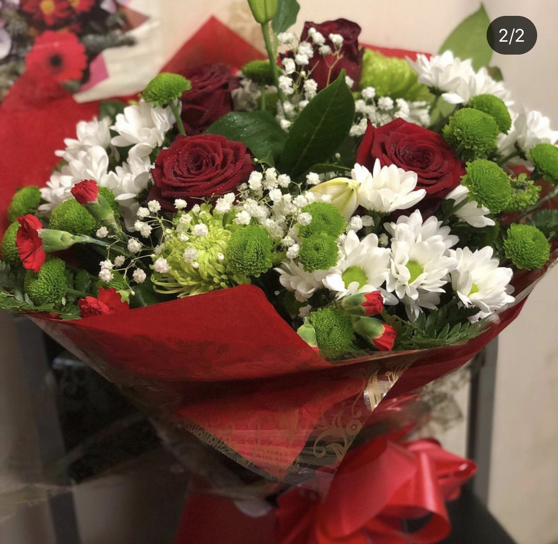 Florist choice two Hand-tied in water flowers and packaging decided by the florist.