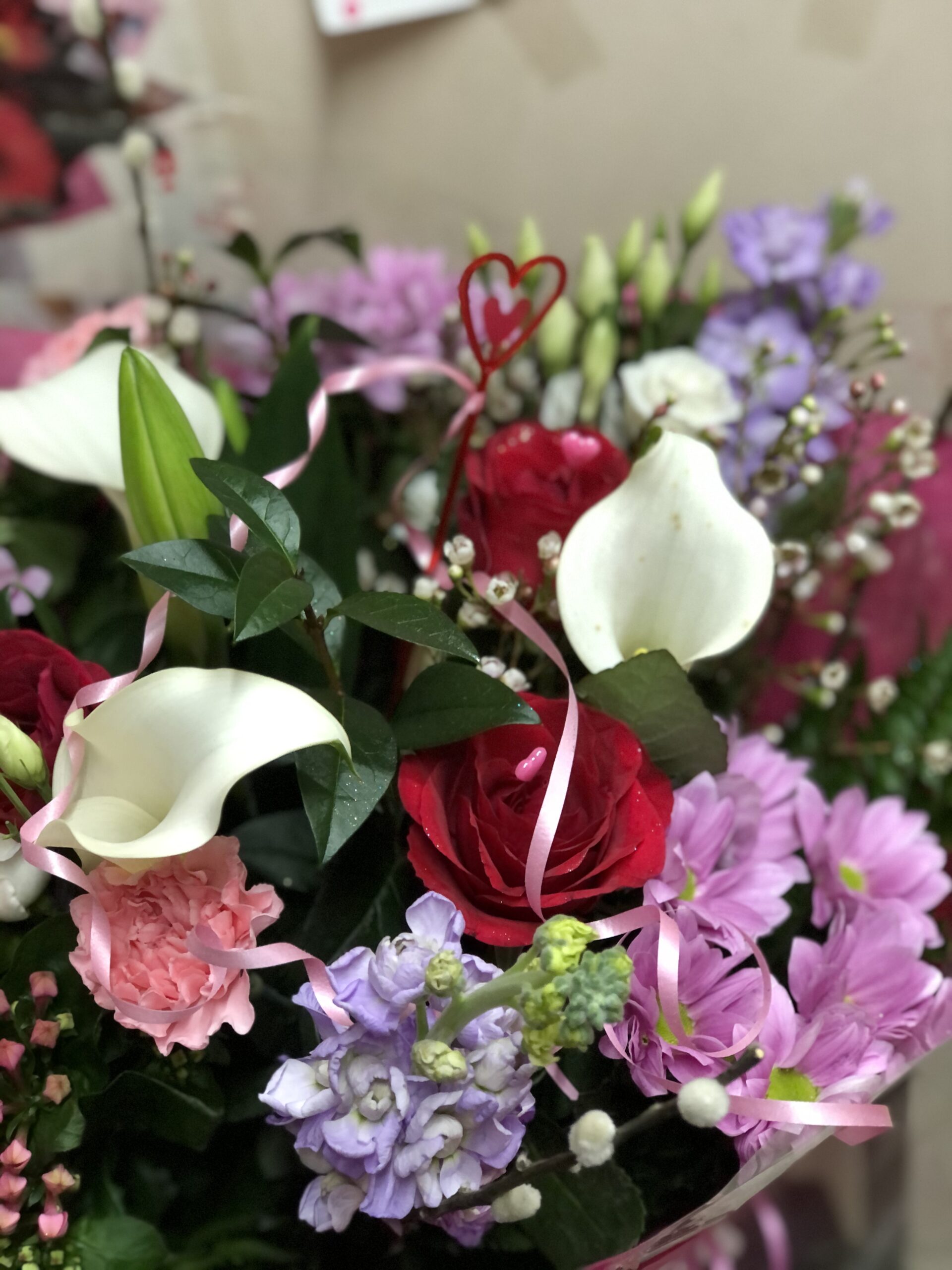 Luxury Pretty pastels with long-stem Lillie’s ,roses,stock,and a nice mixed