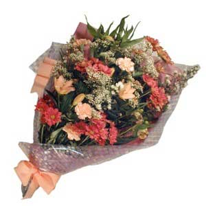 A traditional Bouquet to brighten someone’s day with these sunny flowers all in orange, cream ,white.