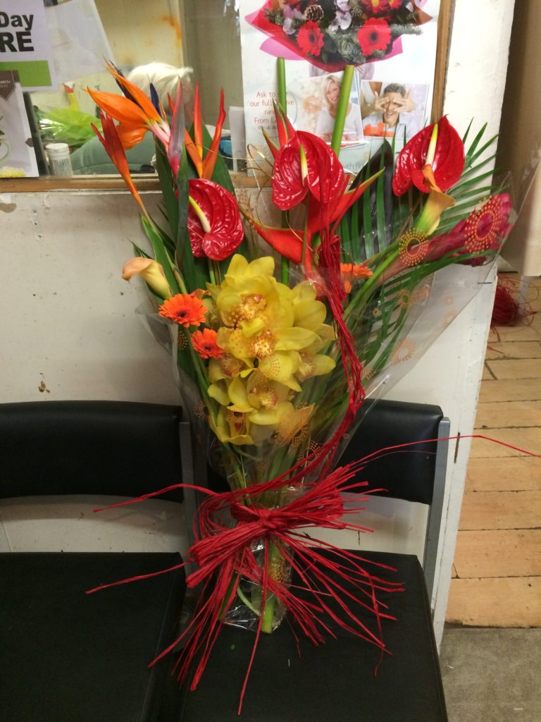 F10 Grand design Luxuary tropical arrangement presented in gift wrap