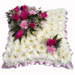 FF32 pink & white cushion A white based cushion with a cluster of shades of pink spray. Alternatively you can change to any colour you like please give us a call to discuss further. 0208471-7070