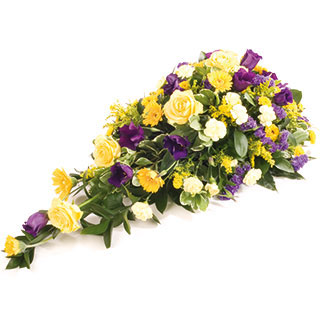 Ff45 yellow single- ended spray Single-ended spray in Oasis with a luxury mix of white, purple , yellow flowers.