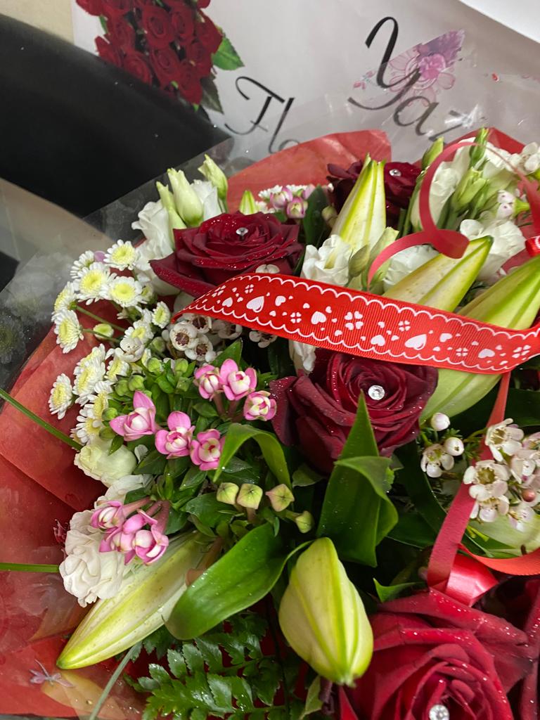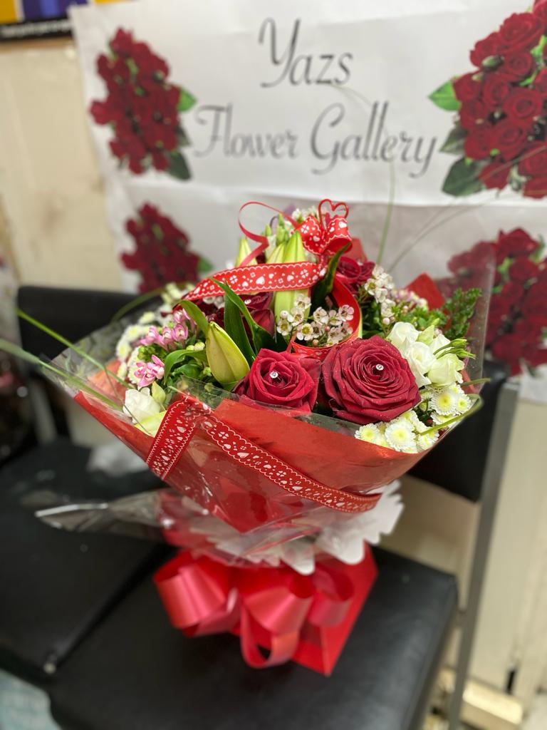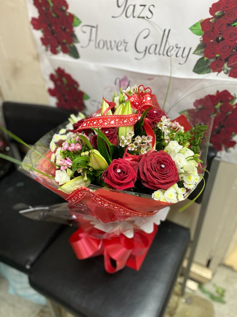For my sweetheart sending lots of love and kisses with this luxury hand tied bouquet featuring a selection of romantic flowers finished with a luxurious red roses.